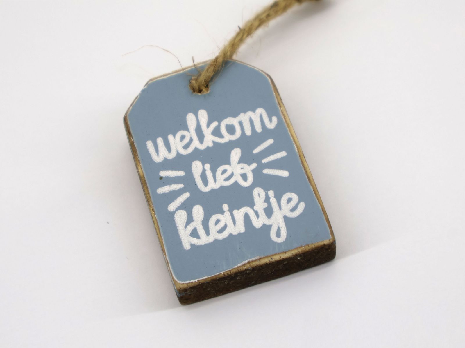 Hanger welkom lief kleintje baby blauw 6x4cm hout
