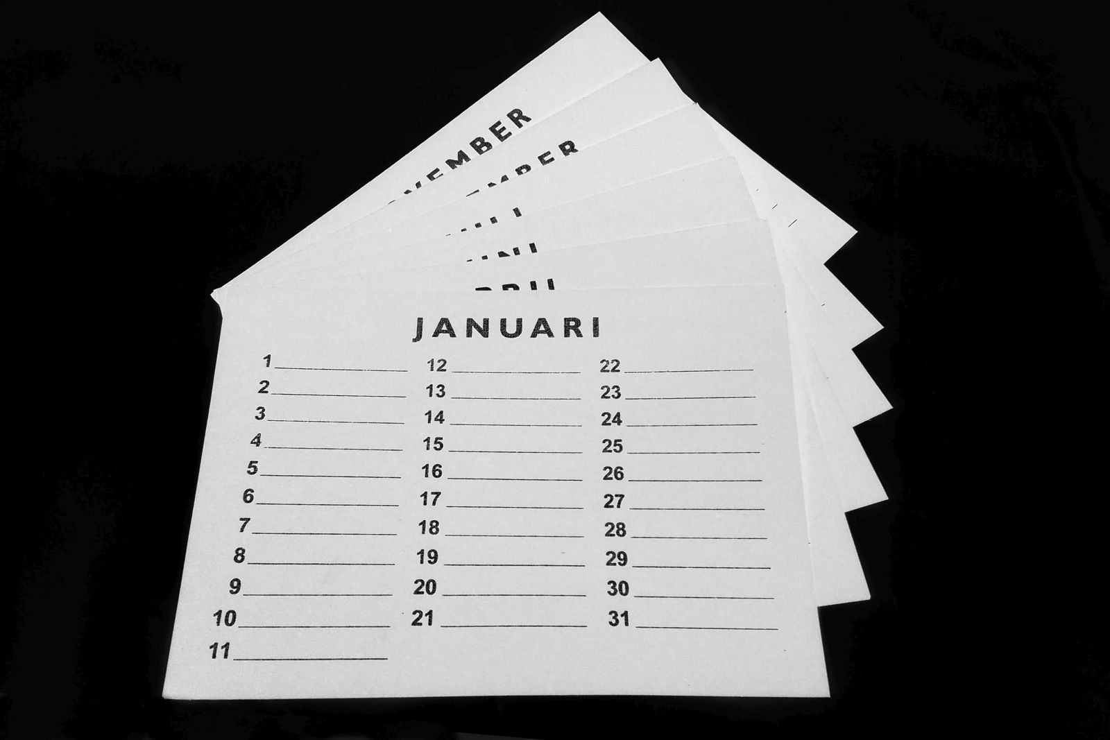 Setje kalenderbladen voor 27x20cm gebroken wit